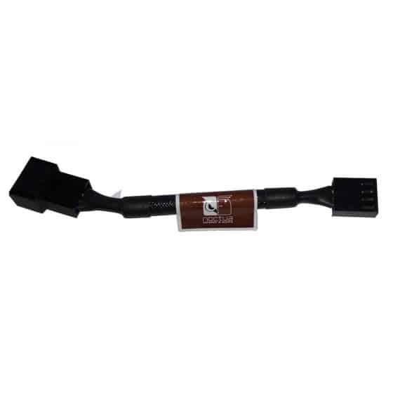 Adapter med inbyggt motstånd för att från 4-pin kontakt driva en fläkt med lägre varvtal.
