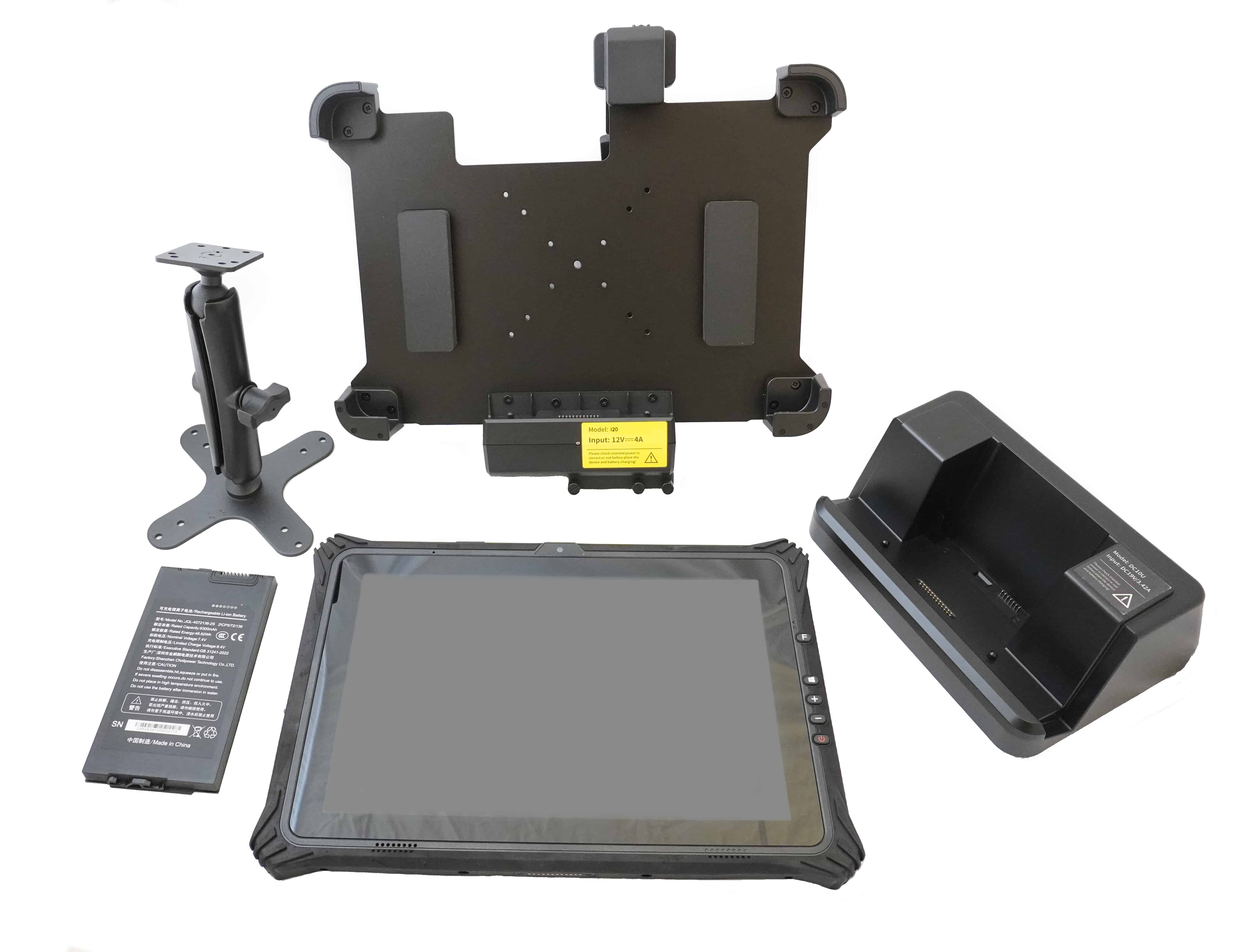 Ruggad, stryktålig surfplatta med dubbla batterier. Man kan alltså under drift ta ut ett batteri och sätta det på laddning för att fortsätta med ett annat. En produkt som används lika ofta som handhållen enhet som installerad i fordon. Full HD upplösning i 16:10 format, täthetsklassad enligt IP54, 4G/5G slot, kraftfull prestanda och stötskyddat chassi.